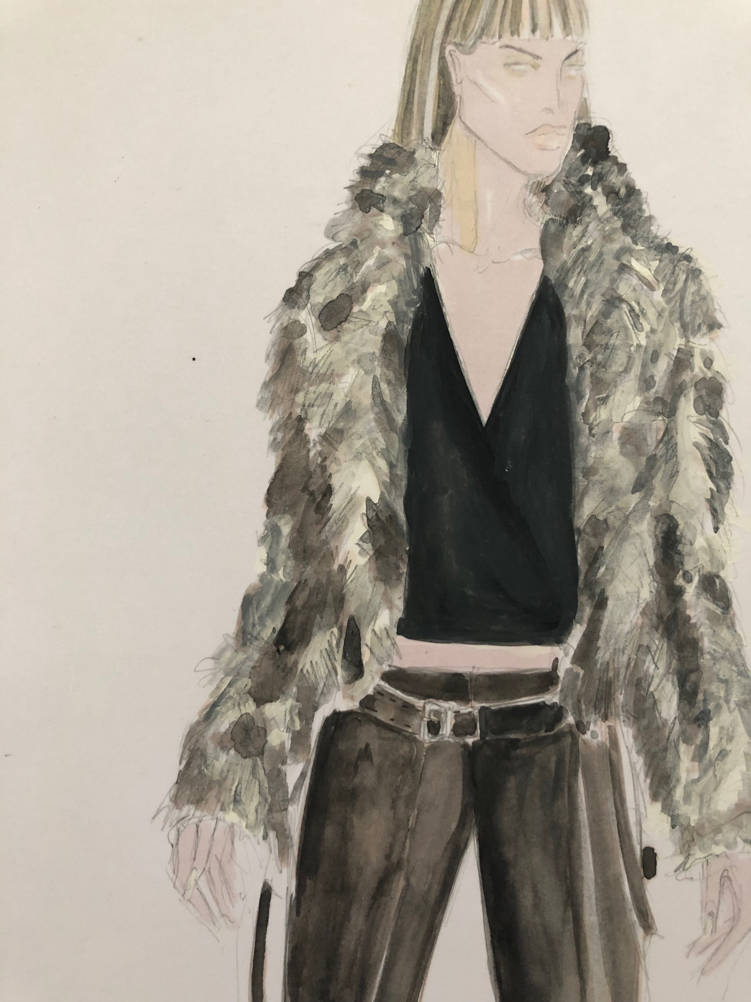 WATER COLOUR ILLUSTRATION OF LEATHER PARKA DESIGN